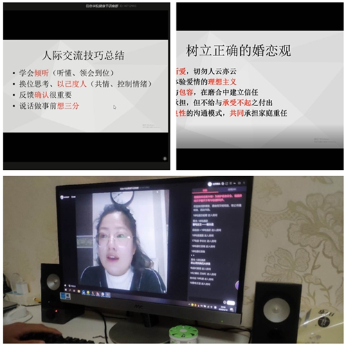 为缓解疫情期间心理压力,引导同学积极调整学习心态,4月18日晚,信息色情网站组织广大师生开展线上心理辅导讲座。主讲人为国家二级心理咨询师、学工办辅导员胡迪老师。共有269名师生加入课程直播间。讲座主要从“疫情期间如何调试心理、如何应对人际关系困惑和如何树立,正确的婚恋观”三个方面进行。同学们纷纷通过课程直播间留言提问等方式交流内心想法、疏导内心烦闷,为返校学习调整到了最佳心理状态。