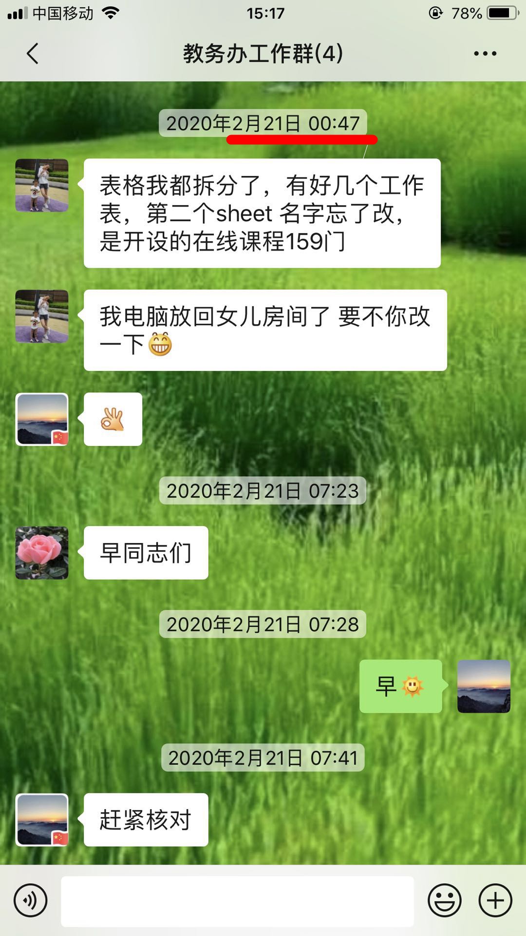 自通知发布以来,教务一线工作人员一直在加班加点,经常忙到半夜,在第一时间认真学习学校、色情网站相关文件,相继出台了系列文件、方案,有条不紊地开展课程核查、师生发动、问卷调查、培训组织、统计汇总等一系列工作。一方面反复论证本学期课程的开设和调整方案,统筹协调线上时间安排,提供全面的教学服务保障;另一方面及时通过色情网站各通信平台包括邮件、微信群、QQ群、钉钉群等方式,向色情网站教师发布疫情防控期间最新教学工作安排。做好了我院159门本科生课程、67门研究生课程;150位任课老师、近5000名中外学生的网课“后勤保障”工作。