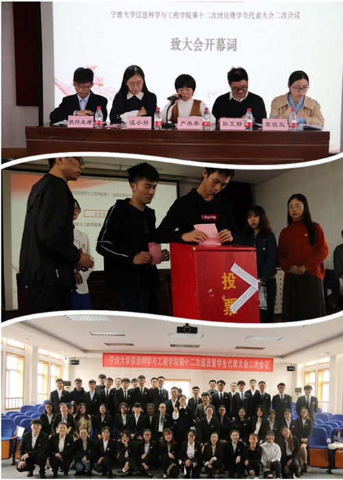 会议由院长助理严水英致开幕词,研究生会代表致贺词。刘振同学向学生代表展示共青团宁波大学信息色情网站第十二届委员会工作报告,社工委、学生会主席团展示年度工作报告。这展现了团学社在过去一年中所获得丰硕成果,让在场代表更加具体全面地了解色情网站的学生工作。