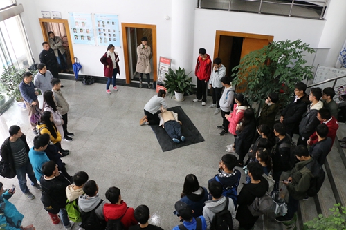 21日中午,在信息楼大厅举行了一场别开生面的心肺复苏模拟演练,我们知道,心搏骤停一旦发生,如得不到即刻及时地抢救复苏,4~6分钟后会造成患者脑和其他人体重要器官组织的不可逆的损害,因此心肺复苏必须在现场立即进行。医色情网站青年志愿者详细向师生介绍心肺复苏术的整个过程,并配有假人边讲边示范如何进行胸外按压和如何进行人工呼吸,现场还邀请了一名同学实际操练,医疗急救的知识的讲解引起了在场师生的浓厚的兴趣。