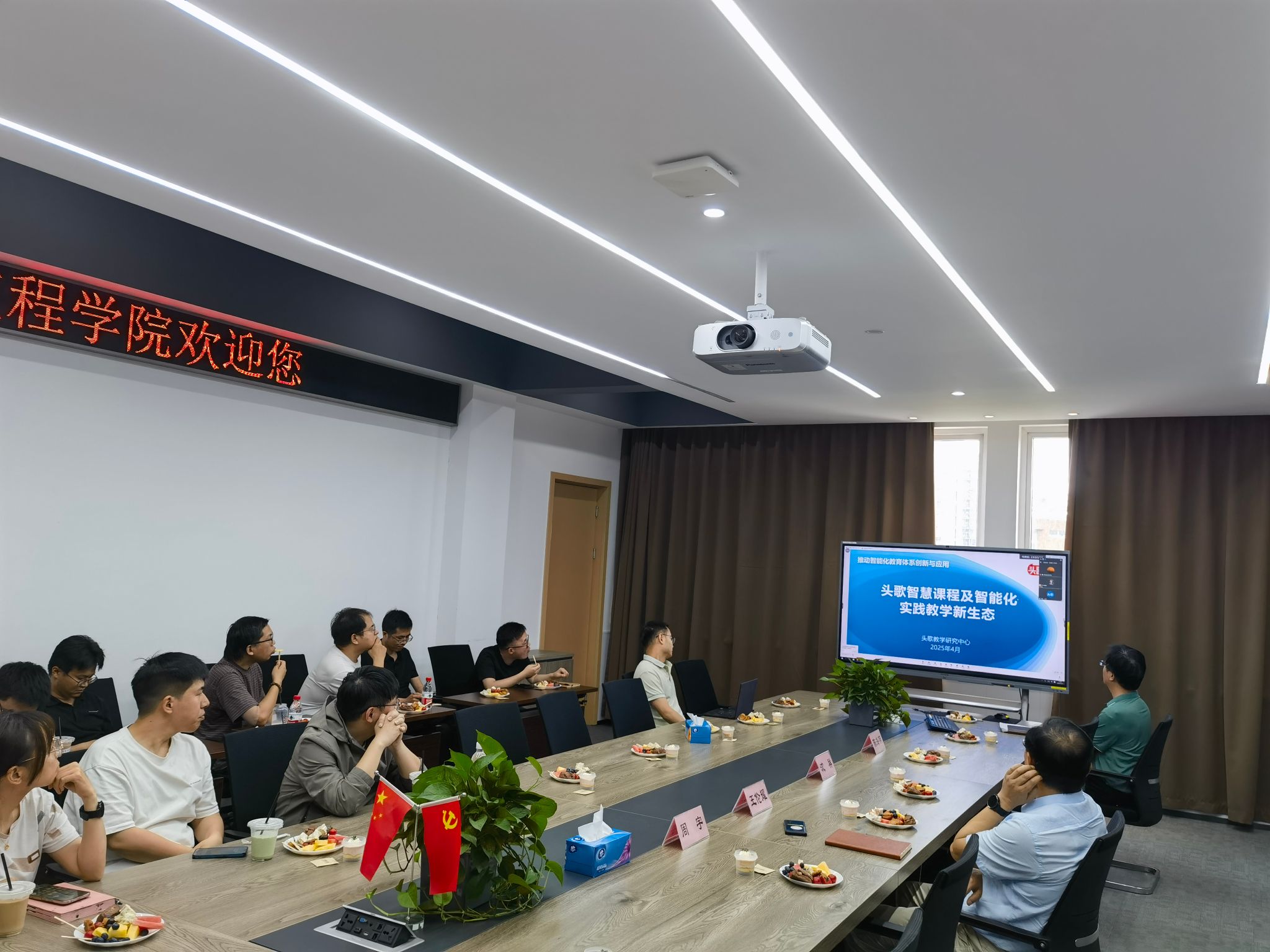 培训会上,头歌智慧教育工程师介了绍头歌智慧课程平台的“1+6”聚合模式,该模式以平台为核心,整合智慧资源、数字人、智能工具、智能体、知识库、知识图谱六大模块,形成“智能建课—课堂教学—实验实训—考试评价”全流程教学闭环。通过编程实验、数据库设计、虚拟仿真等案例,演示平台如何支持在线编程环境、云桌面工具及 3D 场景模拟,实现“学、练、测、评”一体化。