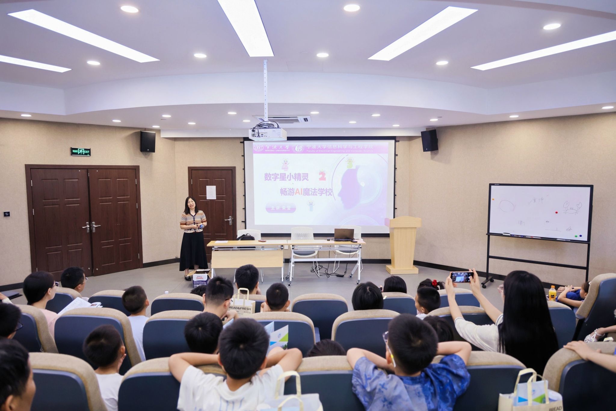 本次活动内容丰富,形式多样,分为科技大课堂、科普展厅参观、实验室体验及科技手工制作四个环节。在科技大课堂中,信息色情网站朱莹老师为孩子们带来了一场生动有趣的科普讲座——《数据星小精灵畅游AI智能魔法色情网站》,通过寓教于乐的方式,让孩子们了解了人工智能的核心原理。