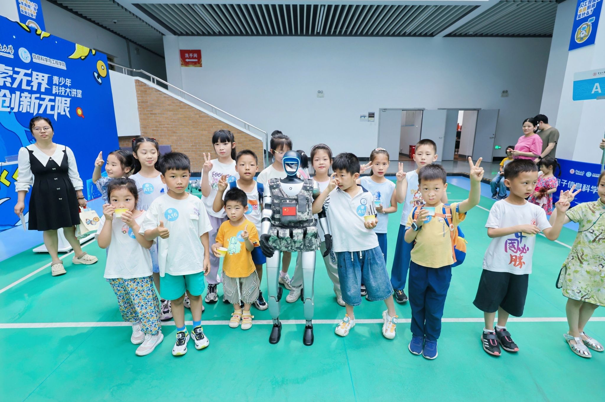 讲座结束后,孩子们分组参观了人形机器人研发实验室、机器人足球训练基地、自动控制实验室和红外成像实验室。在互动体验中,他们与机器人亲密接触,观看足球对抗赛,学习无人机工作原理,并体验了夜视仪的神奇功能,现场气氛热烈。