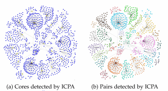 检测核心-外围结构是复杂网络分析中的突出问题之一。各种算法可以识别核心节点和外围节点。最近的进展发现,来自现实世界数据的许多网络可以通过多对核心-外围节点更好地建模。在本研究中,我们建议使用影响传播过程来检测多对核心-外围节点。在这个框架中,我们假设每个节点都可以发出一定量的影响力并通过网络传播它。然后,我们将影响力大的节点确定为核心节点,并利用最大影响力链构建节点配对网络来确定核心-外围对。这种方法可以考虑节点交互,并且可以减少查找对时的噪音。对随机生成的网络和现实世界网络的实验证实了我们算法的效率和准确性。受社区检测模块化最大化方法的启发,我们在这项工作中提出了一种简单但有效的方法来检测核心-外围结构。此外,我们提出了一种称为核心-外围得分的指标来评估核心-外围结构检测算法的性能。在实验中,我们发现当给出真实结构时,分数与归一化互信息一致。对于随机生成的网络和现实世界网络,我们的方法也优于其他核心-外围检测算法。相关论文发表于IEEE Transactions on Network Science and Engineering,Physica A: Statistical Mechanics and its Applications等期刊。