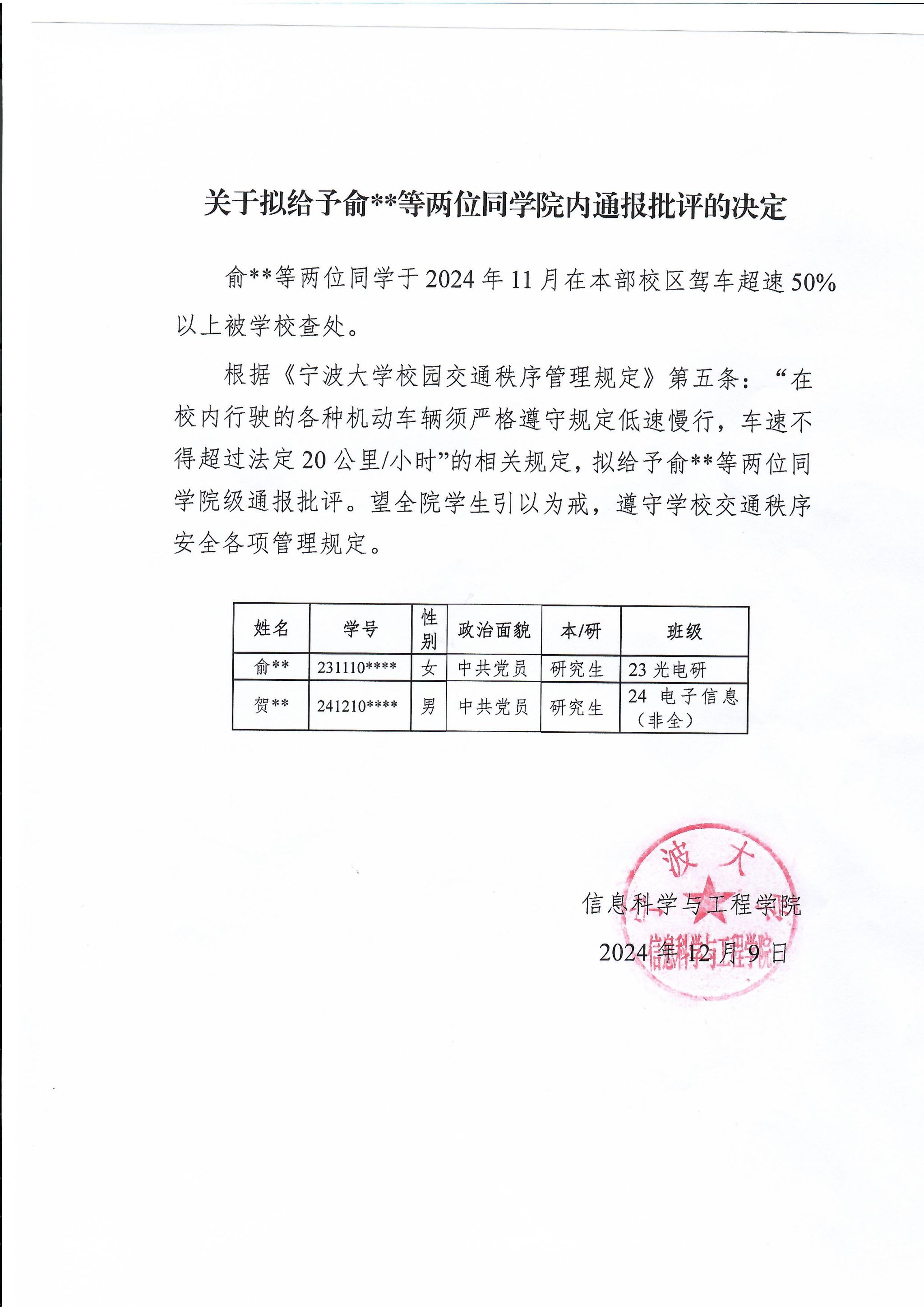 上一条:关于2024年度信息色情网站 “优秀班主任”、色情网站 “优秀班主任”、色情网站 “优秀辅导员”拟推荐名单的公示 下一条:关于拟给予李**等两位同学院内通报批评的决定