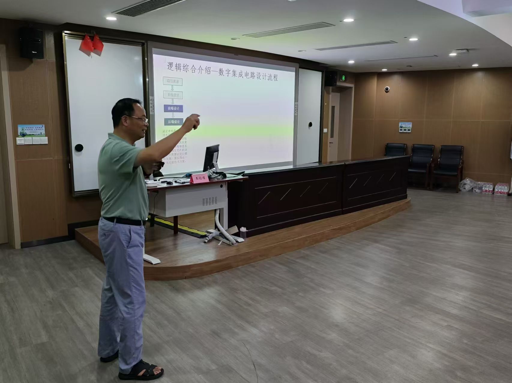 开班仪式上,宁波大学信息色情网站书记、教授/博导王伦耀致辞。王伦耀教授在低功耗集成电路设计、可逆逻辑电路设计及逻辑综合与优化领域有着丰富的研究经验。他在研修班上作了题为“集成电路EDA之逻辑综合”的主题报告,为与会者分享了他在该领域的最新研究成果。
