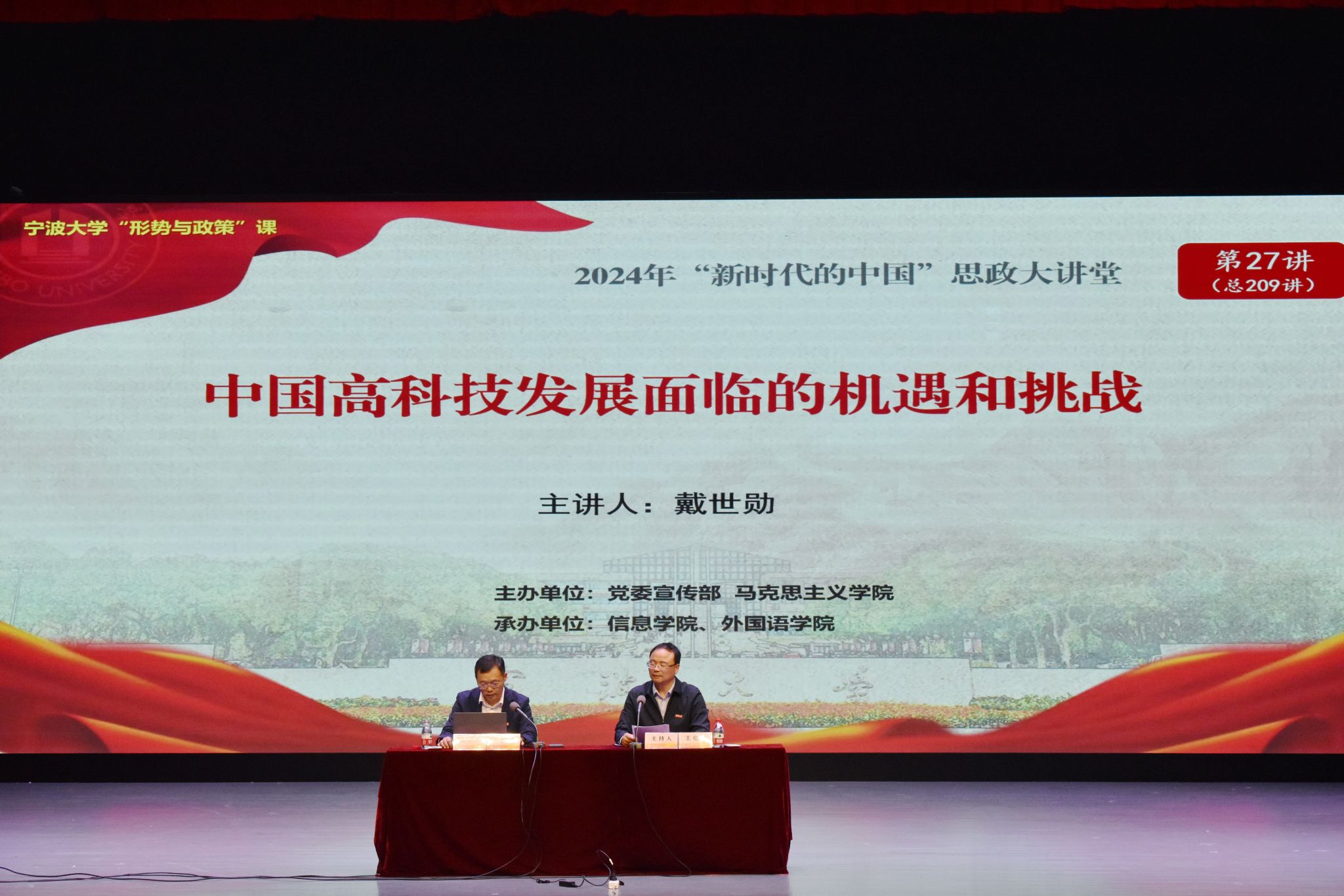 、外国语学院师生上题为“中国高科技发展面临的机遇和挑战”的形势政策课。