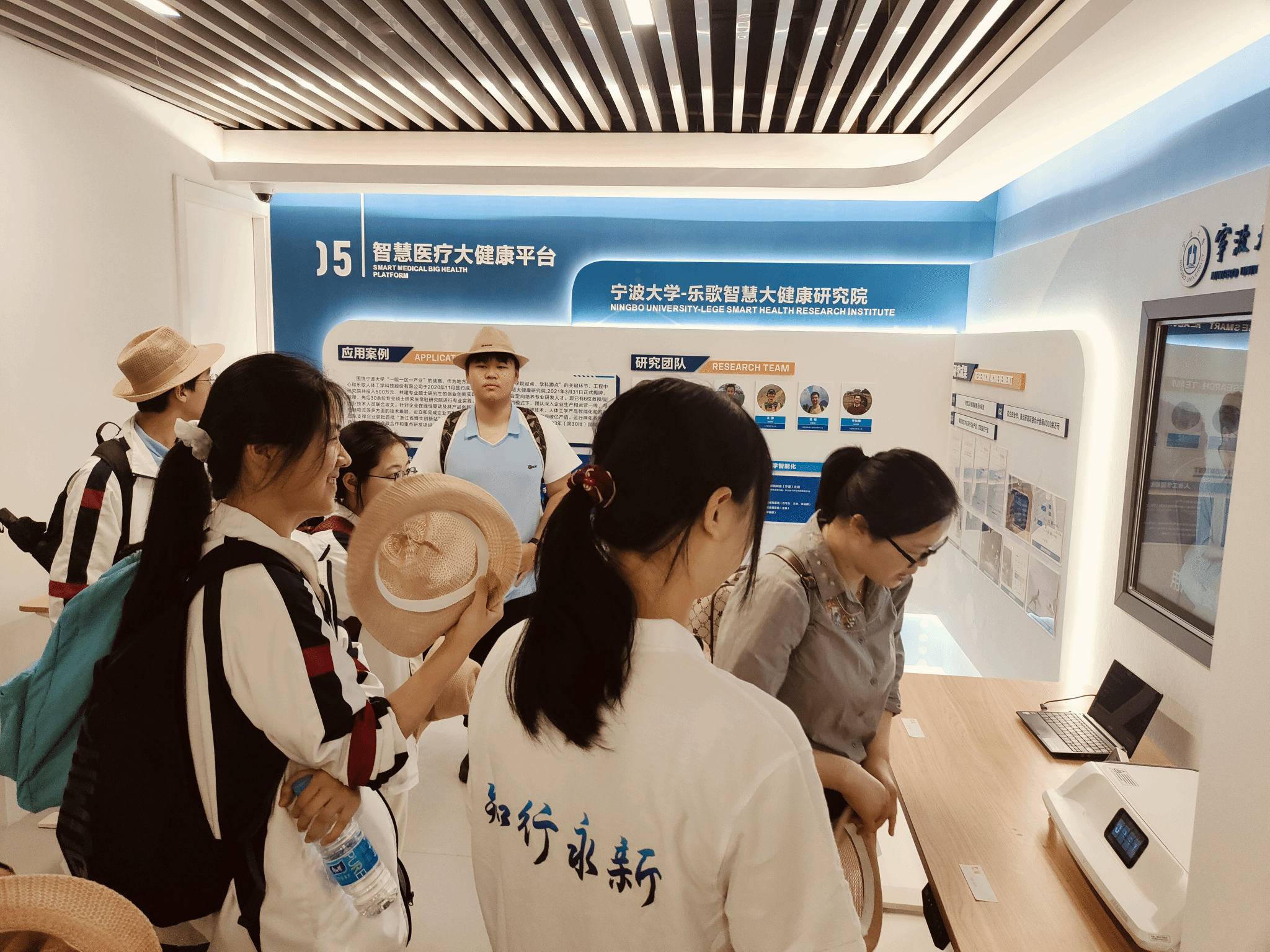 在“智能医疗健康平台”展区,同学们了解了通过可穿戴设备与云端AI分析构建的全周期健康管理体系,覆盖疾病预警、远程诊疗与康复跟踪。现场展示了宁波大学与乐歌智慧大健康研究院联合研发的智能升降桌与姿态健康管理机,让同学们直观体验人工智能在健康管理中的应用,感受数字技术在优化医疗资源配置、推动智慧医疗发展中的重要作用。