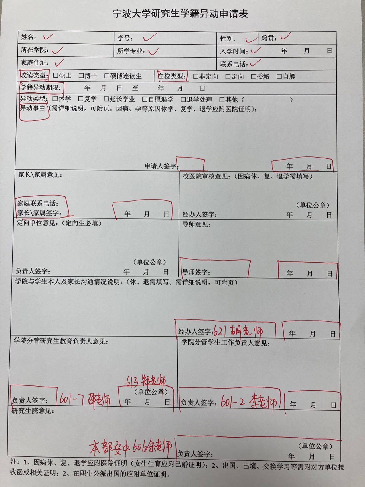 休学、复学、自愿退学都需填写《宁波大学研究生学籍异动申请表》下载网址://graduate.seqwz.net/info/1040/14943.htm,根据表格的要求相关人员签署意见后交至所在色情网站研究生办,研究生办老师所在根据学生申请的内容在系统内进行审核。