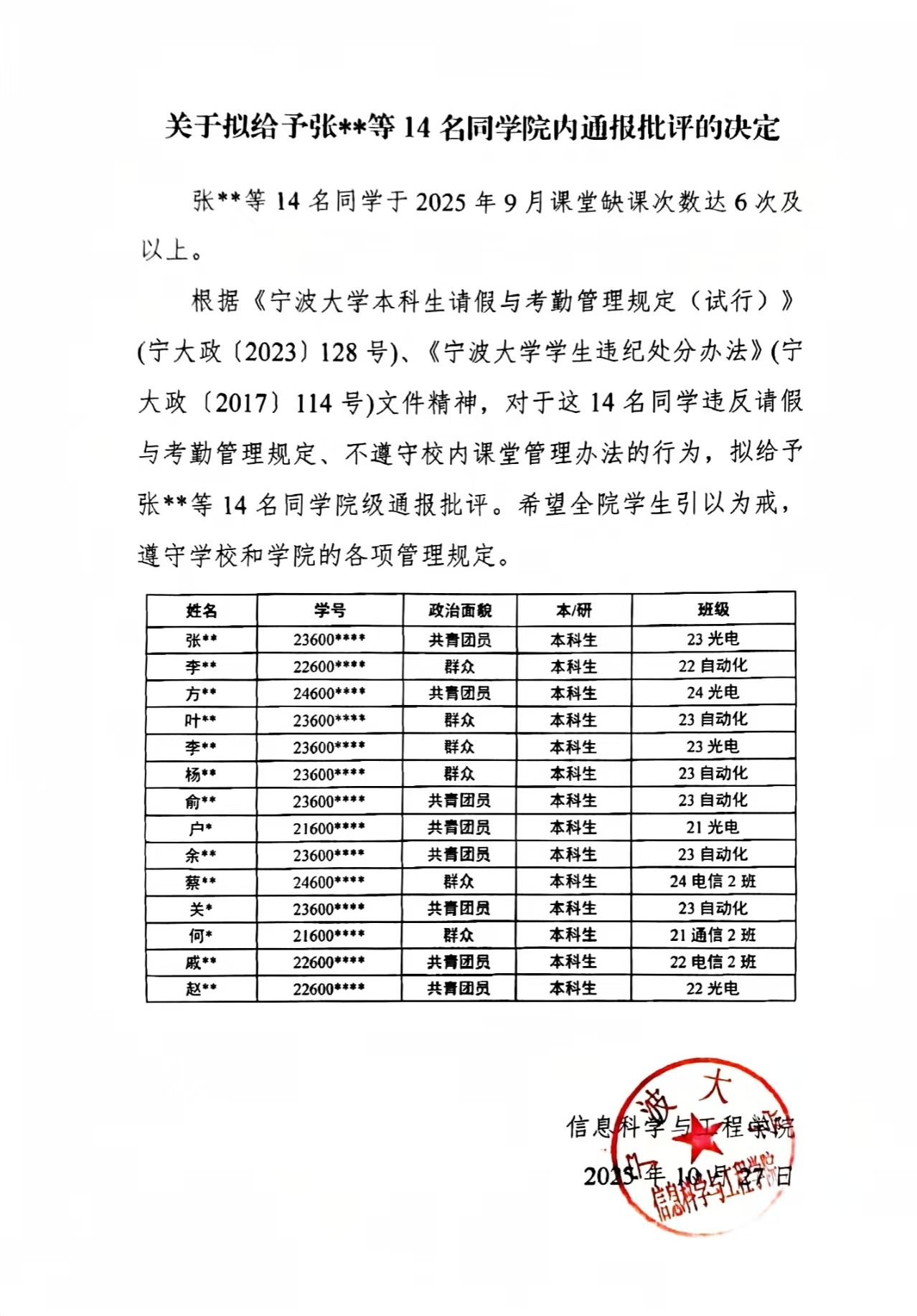 关于拟给予张**等14名同色情网站内通报批评的决定