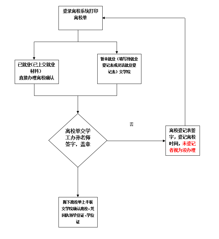所有必办环节完成后,学生凭电子离校单到学工办孙老师处确认离校。