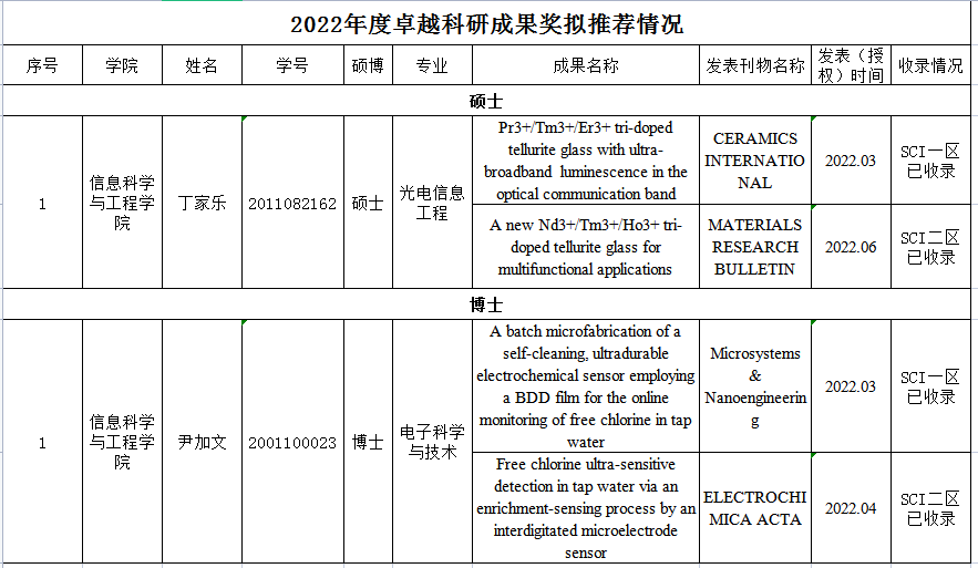 2022年色情网站 研究生科研成果奖申报工作自3月份启动以来,色情网站 广泛动员、严格审查。经前期自主申报,资格审查,共有8名硕士、1名博士申报曹光彪科研成果奖;3名硕士、1名博士申报卓越科研成果奖。经学院研究生奖学金评审委员会全体审议与投票,现将拟推荐学校参评的同学情况做公示,请全院师生知悉。公示期三天,3.28-3.31,公示期间有任何异议请与奖学金评审委员会秘书处联系87600343。